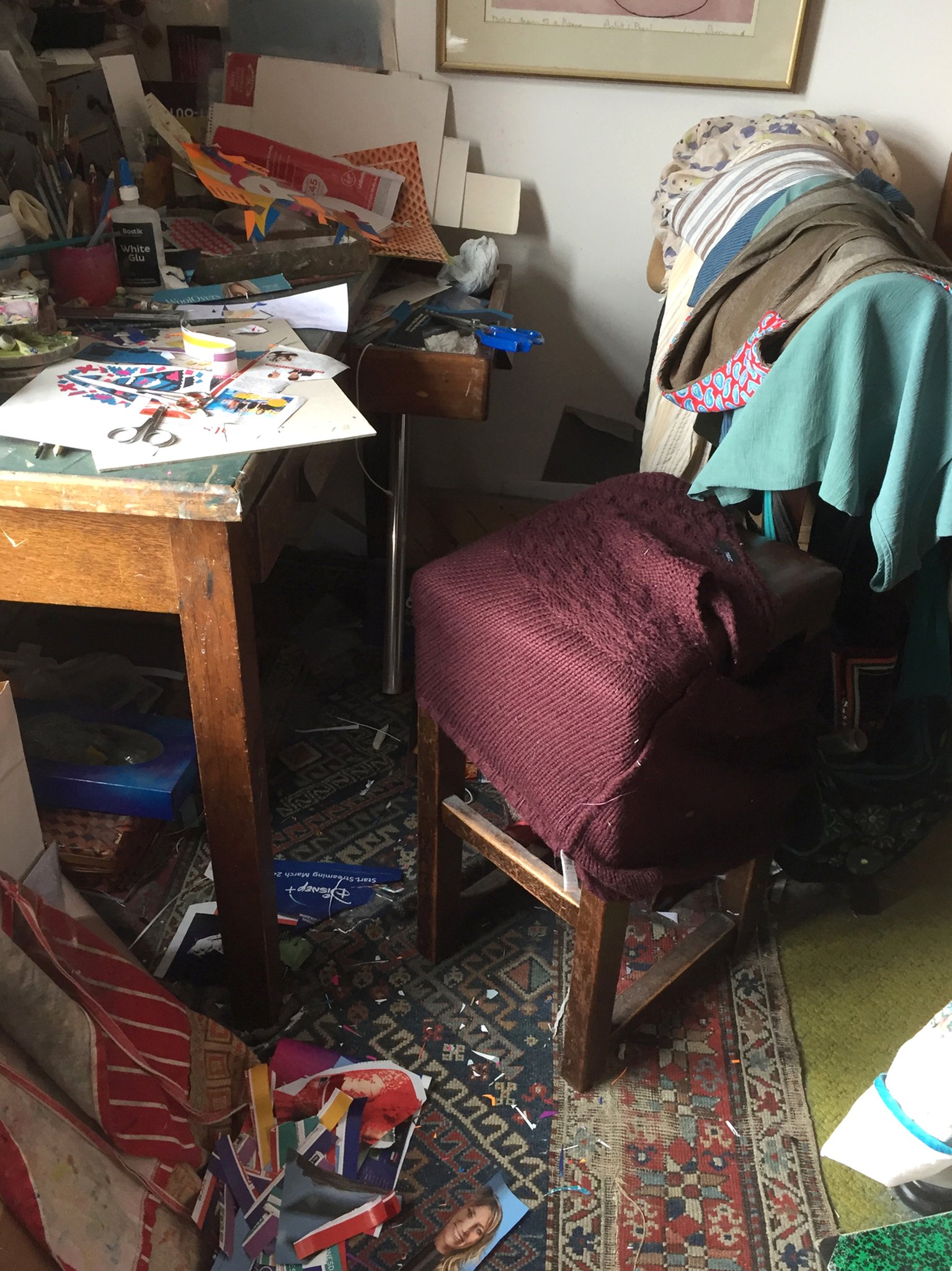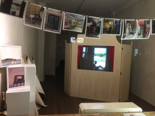 The film was shown from inside a model of a children's theatre created by Jonathan Esperester as part of his contribution to the exhibition. I hung my photographs from a string running across the large window front of the gallery, like washing left out to dry and in the process of being forgotten.